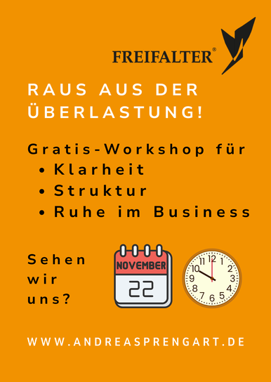 Erfolgreich zu sein, ist leichter als du denkst. Das Potenzial dazu steckt bereits in dir. FREIFALTER® hilft dir deine vorhandenen Fähigkeiten konkret zu erfassen, sie zu verstehen und künftig für bessere Entscheidungen zu nutzen. Andrea M. Sprengart, Betriebswirtin, Projektmanagerin und Business Coach nutzt neben den Instrumenten des systemisch-integralen Coachings sowohl die Körperintelligenz als auch die Kraft des Verstandes. So entsteht ein stabiles Fundament mit einer starken Unternehmervision. In Verbindung mit der 30-jährigen Berufserfahrung der Inhaberin in Wirtschaft und Verwaltung entsteht die besondere Mischung FREIFALTER®: Wissen und Praxis, Lebenserfahrung und Intuition, Wertschätzung und eine strikte Zielorientierung.